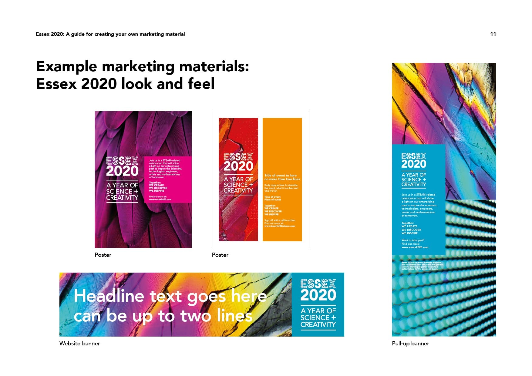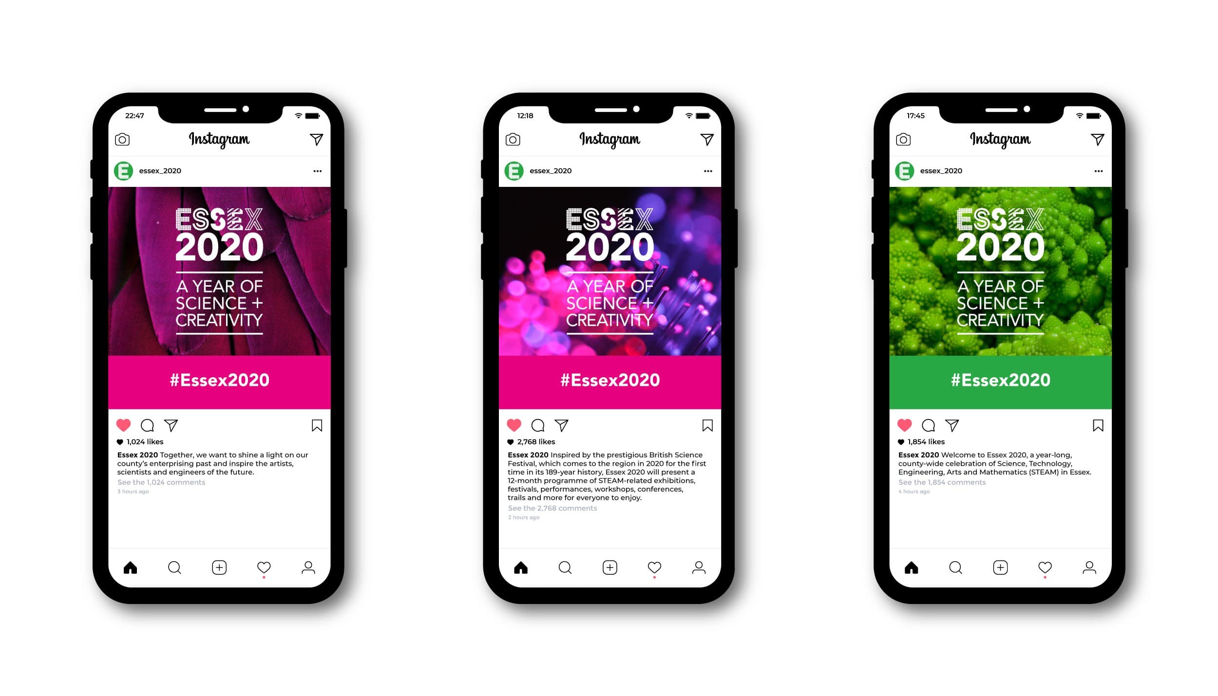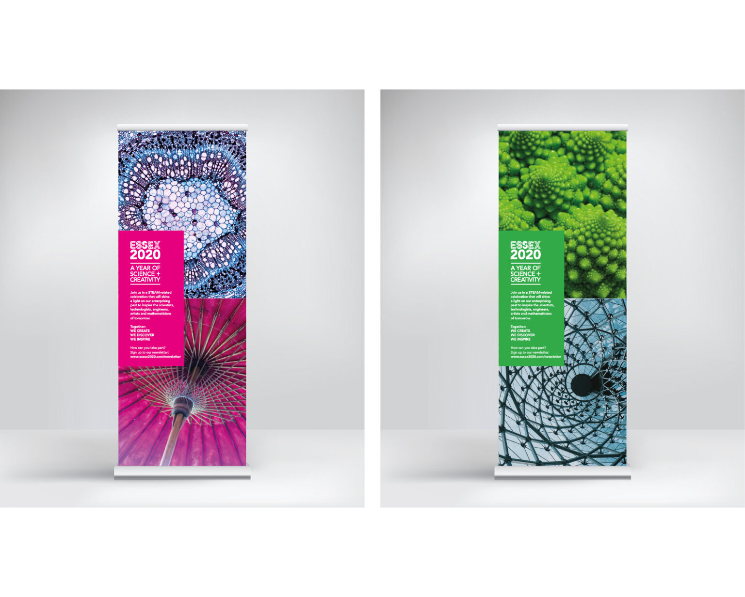 Each letter of ESSEX was depicted graphically to tie in with its relevant STEAM area. To further the theme of innovation and cutting-edge technologies, the identity was supported by a selection of curated images which inspired curiosity and blurred the lines between each of the five areas. Together, they formed the visual language to express the connections and influences between science and art to create ‘wonder’.