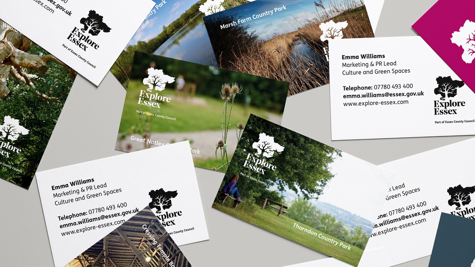 We took inspiration for the logo by using the shape of the county of Essex to depict a tree. Its roots, trunk and branches emanate from the bottom and grows up into the map itself to communicate the idea of heritage, nature and the county. Encompassing visual brand language, graphic assets, marketing communications, brand guidelines, signage and overseeing website build.