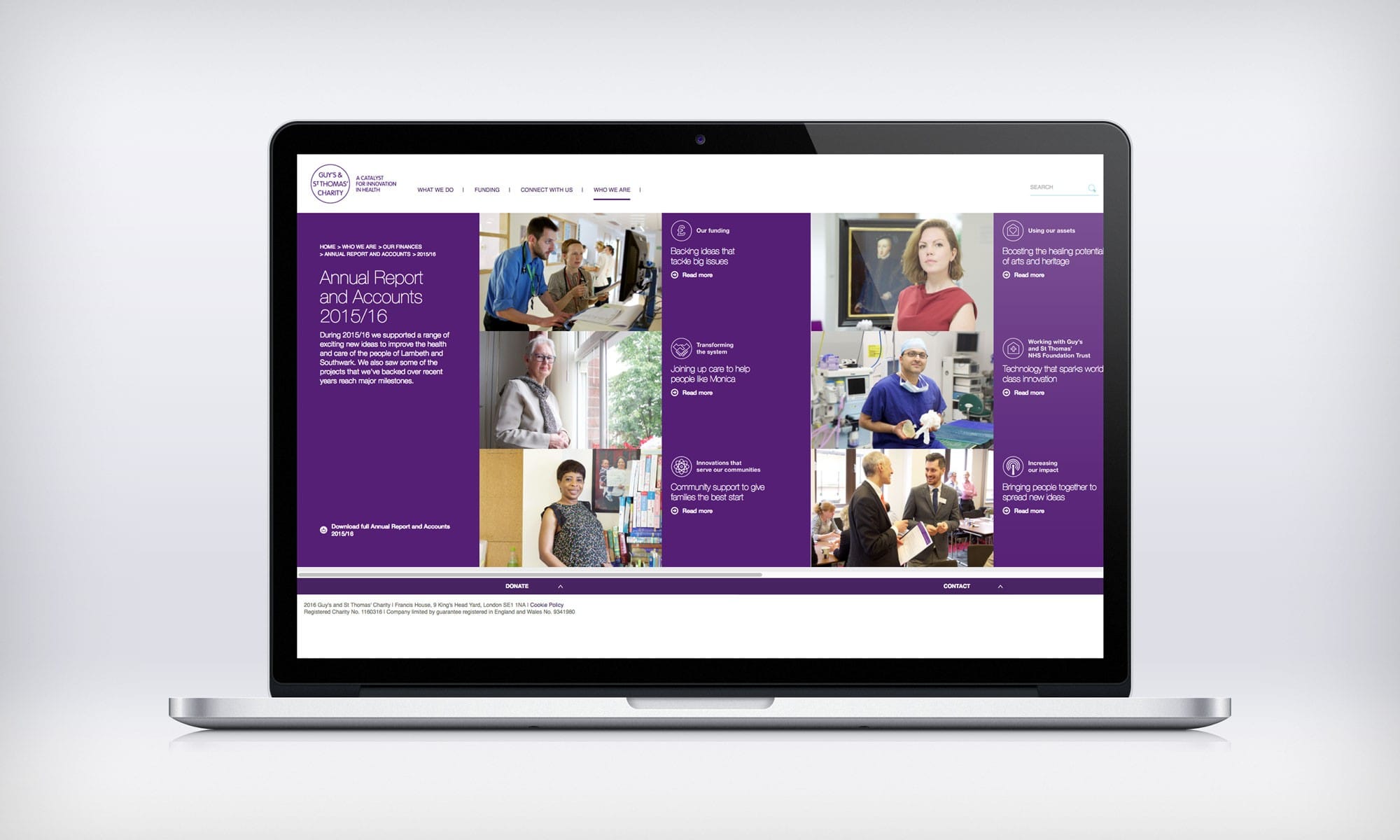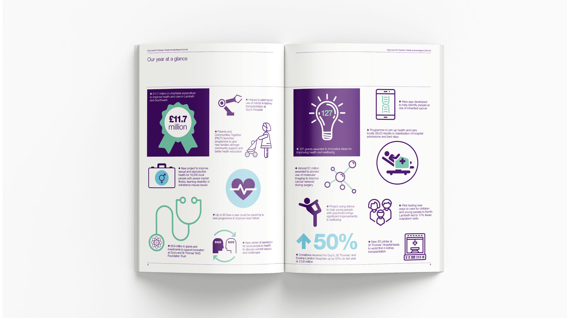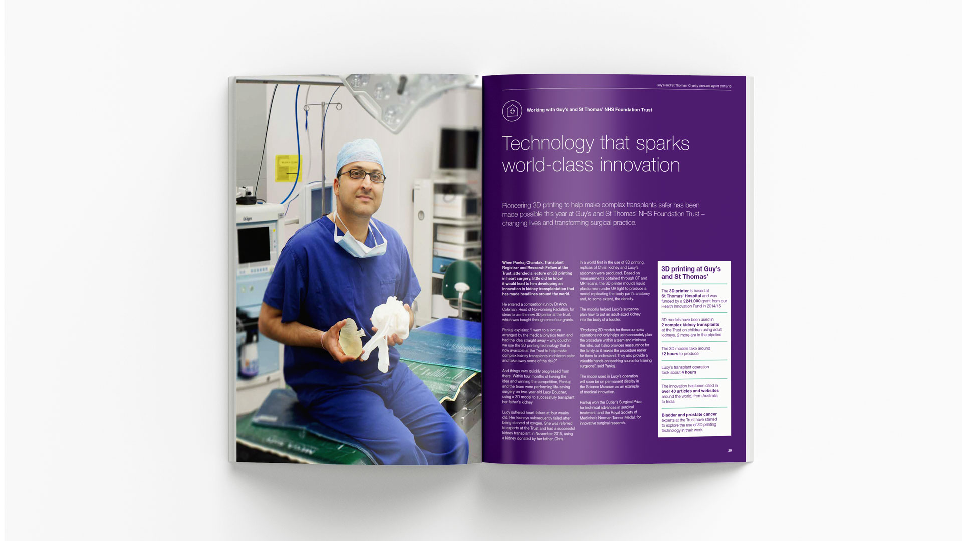 Collaborating with the team at Guy’s & St Thomas’, we were commissioned to design and produce an Annual Report for submission to Parliament and the UK’s independent regulator, NHS Improvement. In addition to the printed report, we developed complementary content and assets tailored for integration with the Trust’s existing website.