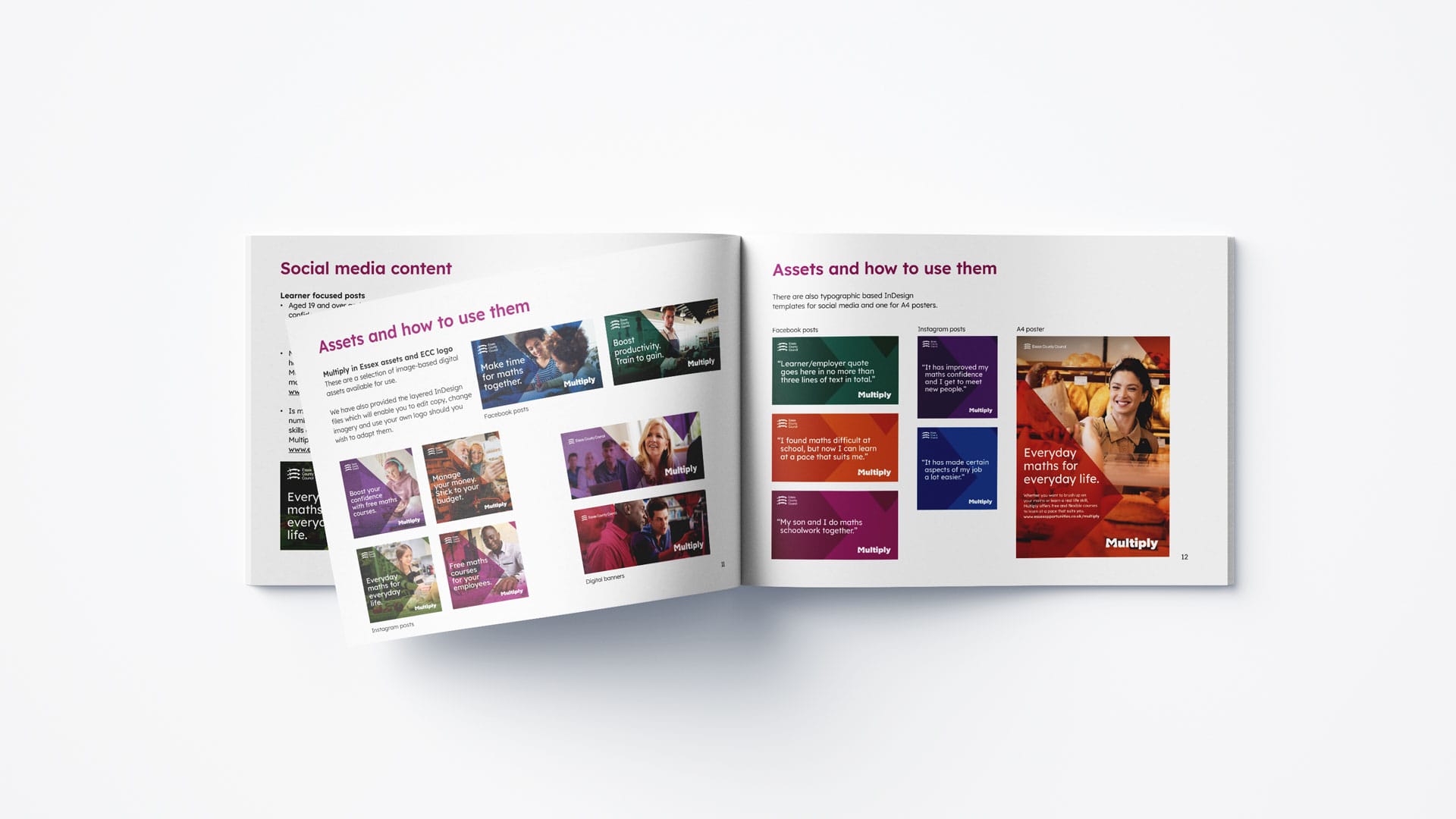 The graphic look and feel took inspiration from the already existing Multiply logo by focusing on the ‘X’ created in the middle of the leading letter. Tone of voice was friendly and inviting, offering a range of ideas using simple everyday language that the largest possible audience could understand. Our overarching thought ‘Everyday maths for everyday life’ was used to underpin image selection, copy writing and messaging.What we delivered